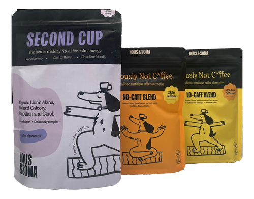 "5 stars all around! I love the taste and smell of coffee, but I hate how it makes me feel on edge and dehydrated. I am so happy to have found Nous and Soma so I can enjoy my morning's cuppa without compromising my wellbeing. Fully recommend it!!"