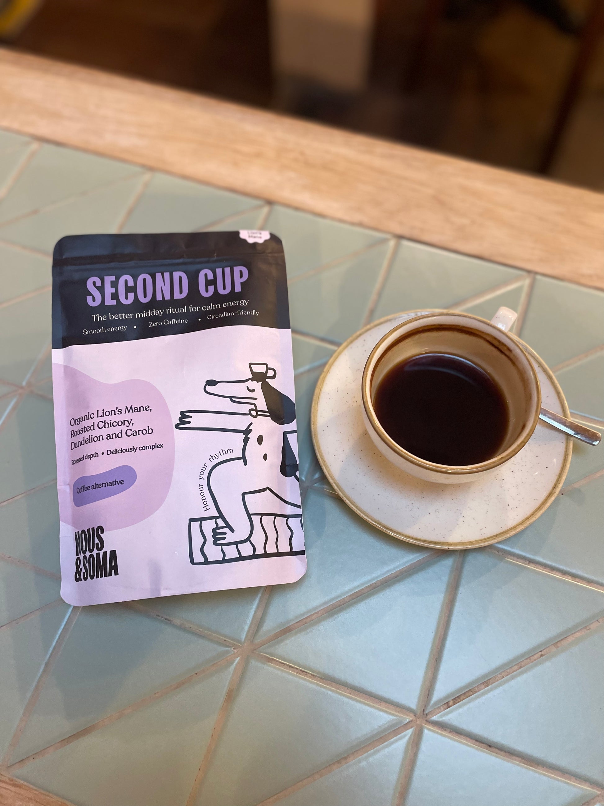 Second Cup is a roasted high fibre botanical ritual for modern energy - a bold blend of Lion's Mane balanced with roasted Chicory, Dandelion and Carob paired with other nutrients crafted to work with your rhytm, not against it.