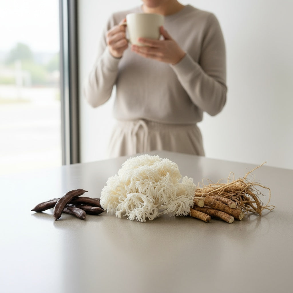 Dandelion, chicory, and carob support adrenal health by reducing stress-induced cortisol spikes and help balance adrenal function, promoting resilience against stress and provide steady energy, minimizing adrenal fatigue from caffeine or sugar highs.
